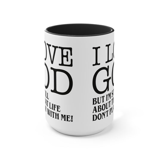 I LOVE GOD BUT Accent Mugs